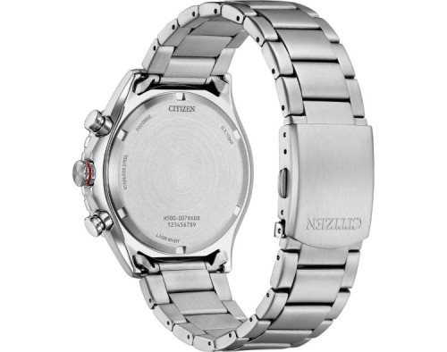 Armbanduhr Citizen Eco-Drive AT2566-88E für Herren mit Quarzwerk, Uhrengehäuse aus Edelstahl mit einem Durchmesser von 43 mm, Ziffernblatt Schwarz und Uhrenarmband aus Edelstahl in der Farbe Silber.
