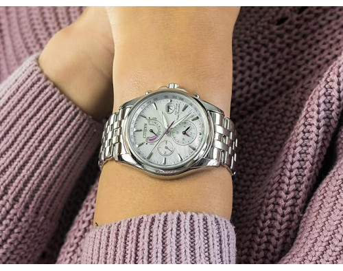 Armbanduhr Citizen Eco-Drive Radio Controlled FC0010-55D für Damen mit Quarzwerk, Uhrengehäuse aus Edelstahl mit einem Durchmesser von 39 mm, Ziffernblatt Perlmutt und Uhrenarmband aus Edelstahl in der Farbe Silber.