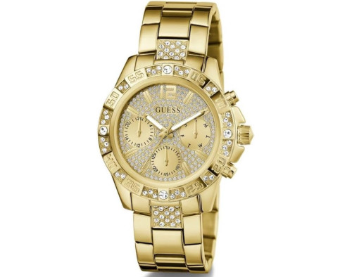 Armbanduhr Guess Majesty GW0771L2 für Damen mit Quarzwerk, Uhrengehäuse aus Edelstahl mit einem Durchmesser von 42 mm, Ziffernblatt Gold und Uhrenarmband aus Edelstahl in der Farbe Gold.