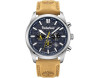 Armbanduhr Timberland Northbridge TDWGF0009602 für Herren mit Quarzwerk, Uhrengehäuse aus Edelstahl mit einem Durchmesser von 45 mm, Ziffernblatt Blau und Uhrenarmband aus Leder in der Farbe Braun.
