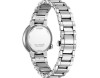Armbanduhr Citizen Elegance EM0910-80N für Damen mit Quarzwerk, Uhrengehäuse aus Edelstahl mit einem Durchmesser von 30 mm, Ziffernblatt Azurblau und Uhrenarmband aus Edelstahl in der Farbe Silber.