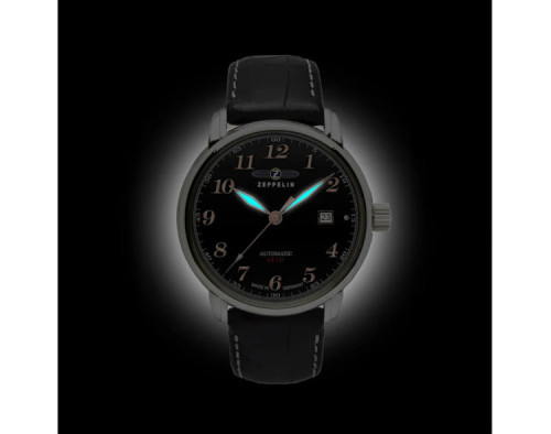 Armbanduhr Zeppelin LZ127 Graf 7656-2 für Herren mit Mechanisch, Uhrengehäuse aus Edelstahl mit einem Durchmesser von 40 mm, Ziffernblatt Schwarz und Uhrenarmband aus Leder in der Farbe Schwarz.