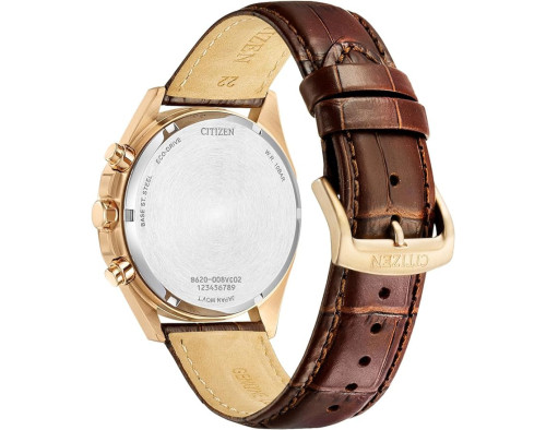 Armbanduhr Citizen Eco-Drive CA4593-15A für Herren mit Quarzwerk, Uhrengehäuse aus Edelstahl mit einem Durchmesser von 41 mm, Ziffernblatt Beige und Uhrenarmband aus Leder in der Farbe Braun.