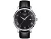Armbanduhr Tissot Tradition T063.610.16.058.00 für Herren mit Quarzwerk, Uhrengehäuse aus Edelstahl mit einem Durchmesser von 42 mm, Ziffernblatt Schwarz und Uhrenarmband aus Leder in der Farbe Schwarz.