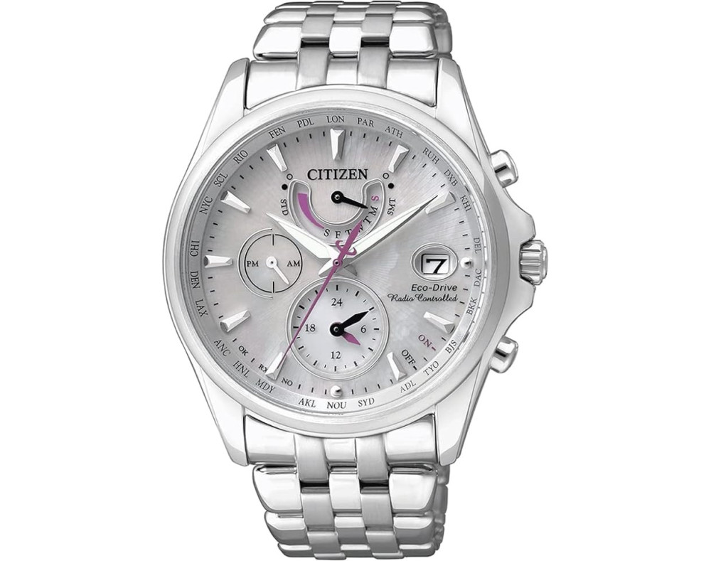 Reloj de pulsera Citizen Eco-Drive Radio Controlled FC0010-55D para Mujer con movimento de Cuarzo, con caja de Acero inoxidable con diàmetro de 39 mm, con cuadrante Madreperla y correa en Acero inoxidable, color Plateado.