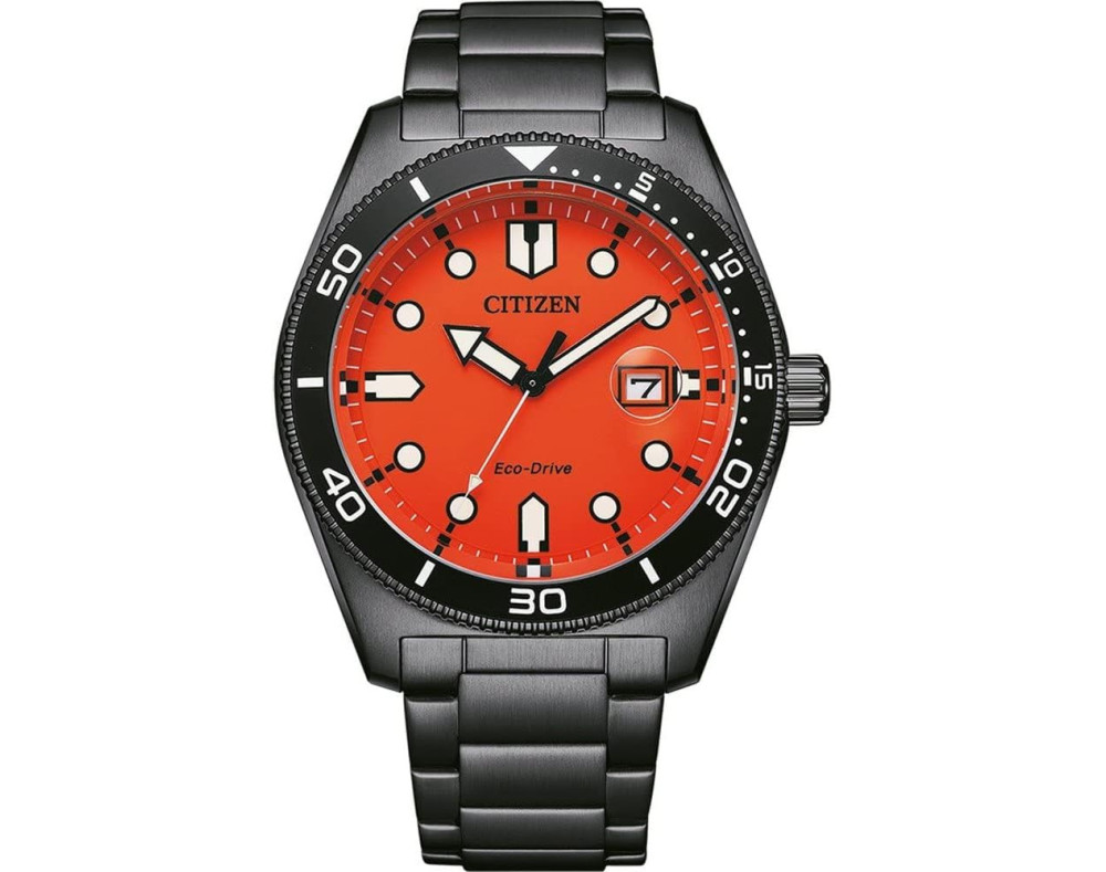 Reloj de pulsera Citizen Eco-Drive Core AW1765-88X para Hombre con movimento de Cuarzo, con caja de Acero inoxidable con diàmetro de 43 mm, con cuadrante Naranja y correa en Acero inoxidable, color Negro.