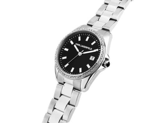 Kvarts Naine Käekell Karl Lagerfeld R0553101511, Roostevaba teras korpusega, läbimõõduga 35 mm, Mineraal klaasist, Must sihverplaadi ja Hõbedane Roostevaba teras rihm.