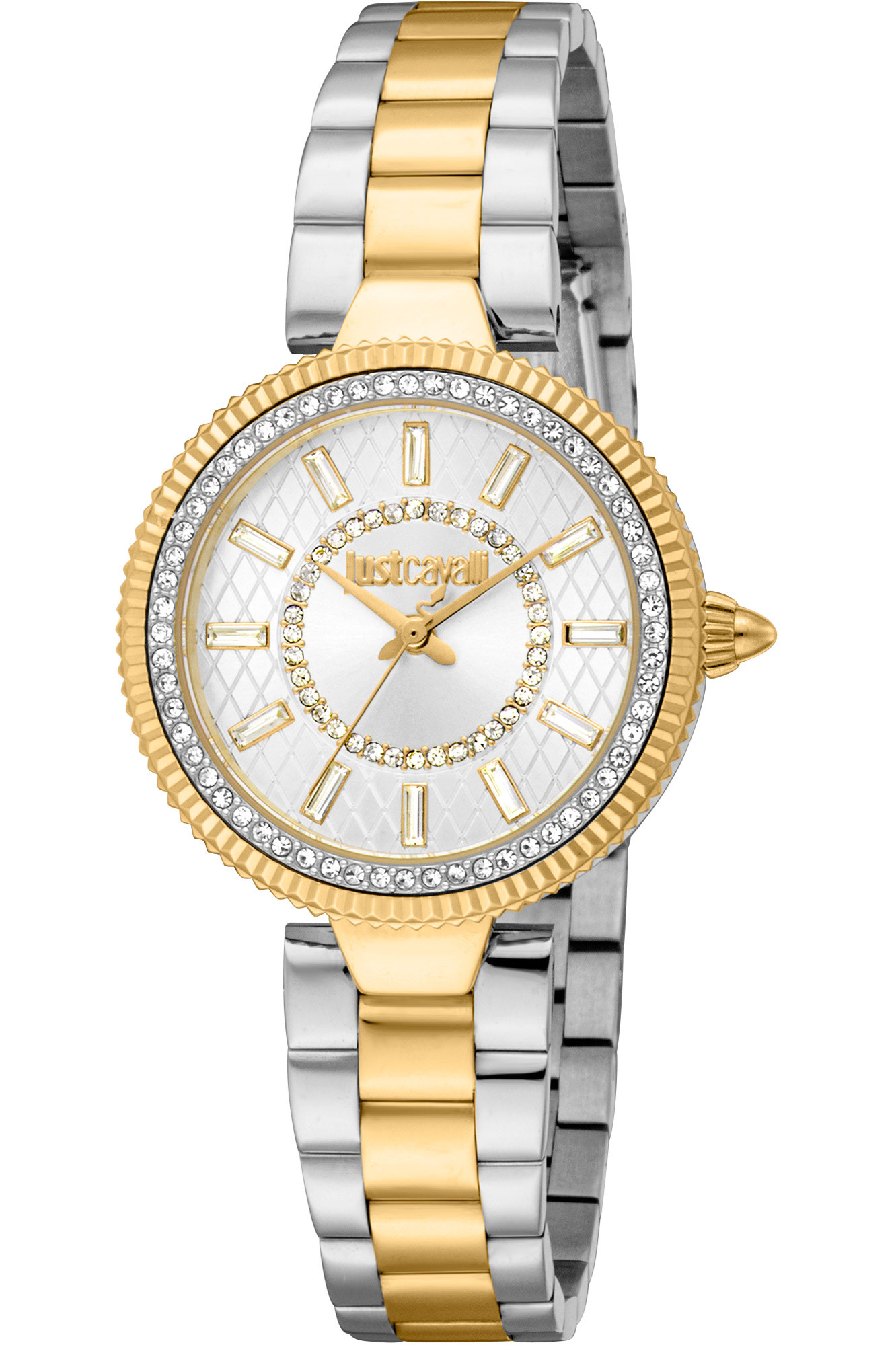 Kvarts Naine Käekell Just Cavalli JC1L308M0085, Roostevaba teras korpusega, läbimõõduga 30 mm, Mineraal klaasist, Hõbedane sihverplaadi ja Kahetooniline Roostevaba teras rihm.