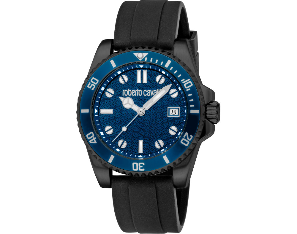 Kvarts Mees Käekell Roberto Cavalli RC5G129P0035, Roostevaba teras korpusega, läbimõõduga 41 mm, Mineraal klaasist, Sinine sihverplaadi ja Must Kustutuskumm rihm.