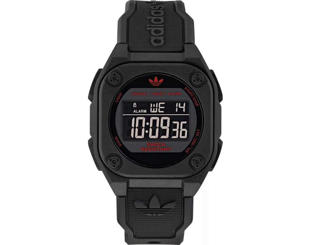 Kvarts Unisex Käekell Adidas AOST25029, Plastikust korpusega, läbimõõduga 43 mm, Akrüül klaasist, Must sihverplaadi ja Must Silikoon rihm.