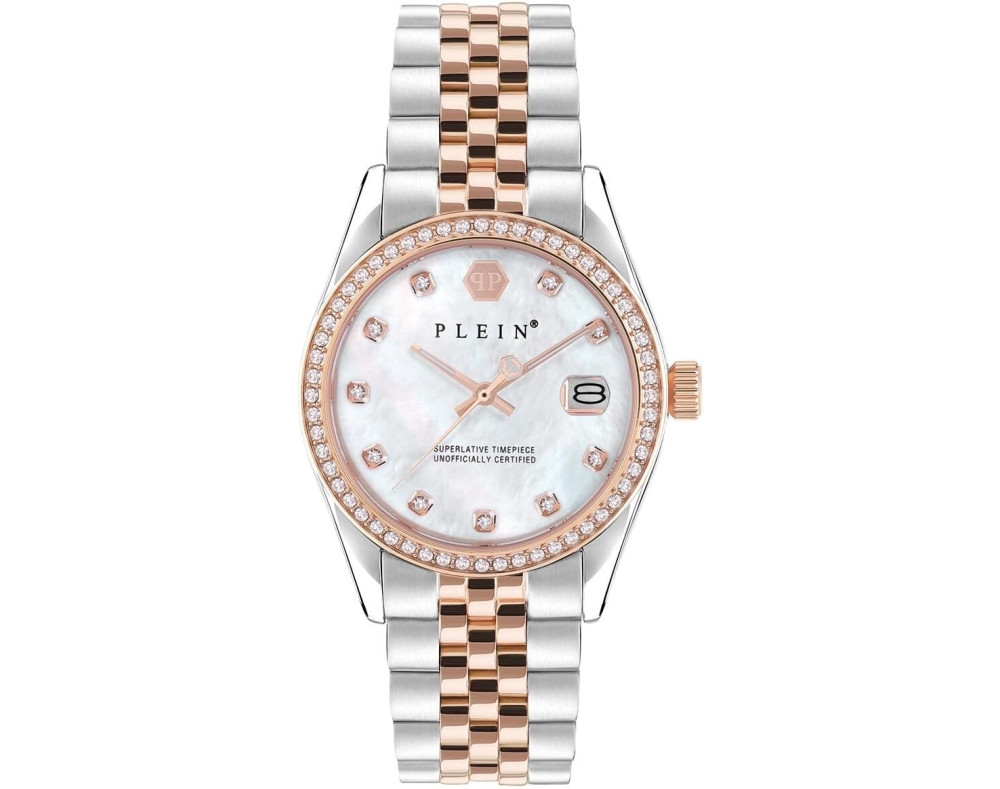 Kvarts Naine Käekell Philipp Plein PWYAA0223, Roostevaba teras korpusega, läbimõõduga 34 mm, Mineraal klaasist, Pärlmutter sihverplaadi ja Kahetooniline Roostevaba teras rihm.