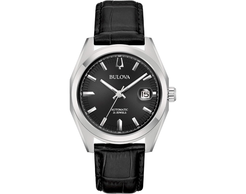 Montre bracelet Bulova Surveyor 96B435 pour Homme à Mécanique, avec une boîtier de Acier inoxydable d’un diamètre de 39 mm, avec un cadran Noir et avec un bracelet de Cuir en couleur Noir.