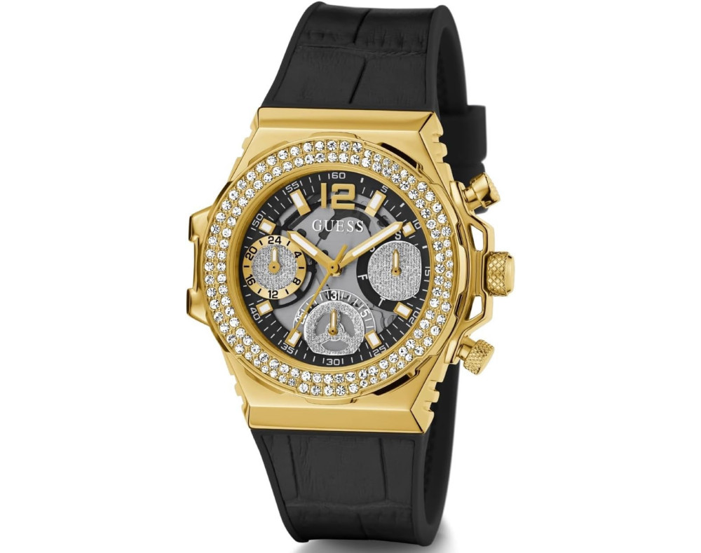 Montre bracelet Guess Fusion GW0553L4 pour Femme à Quartz, avec une boîtier de Acier inoxydable d’un diamètre de 36 mm, avec un cadran Noir et avec un bracelet de Silicone en couleur Noir.