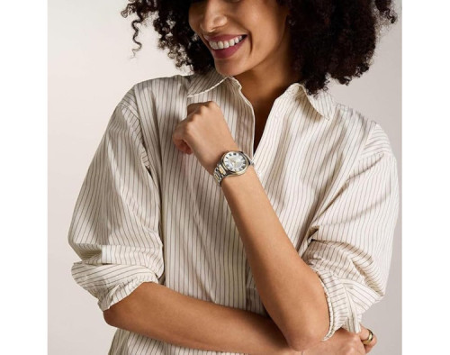 Quartz Womens Wristwatch Fossil Gilmore ES5396 with Stainless steel case, with diameter 38 mm, White dial and Two-tone Stainless steel band.