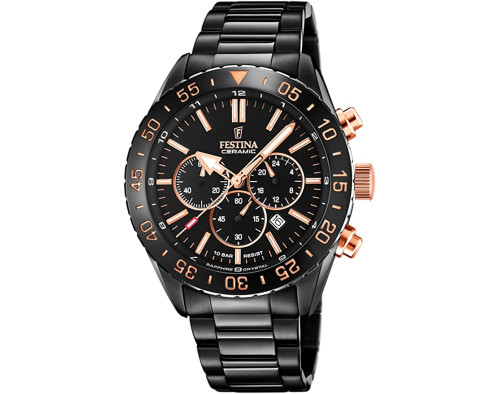Quartz Man Wristwatch Versace Greca Dome VE6K00523 with Stainless steel case, with diameter 43 mm, Black dial and Gold Stainless steel band.