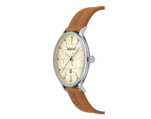 Orologio da polso Timberland TBL15488JS07 Analogico Uomo con movimento Al quarzo, cassa in Acciaio inossidabile di diametro 43 mm, quadrante Beige, vetro Minerale e cinturino in Pelle di colore Marrone.