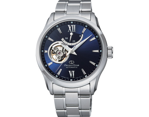Orologio da polso Orient Star Semi Skeleton RE-AT0001L00B Analogico Uomo con movimento Meccanico, cassa in Acciaio inossidabile di diametro 39 mm, quadrante Blu, vetro Minerale con trattamento Zaffiro e cinturino in Acciaio inossidabile di colore Argento.