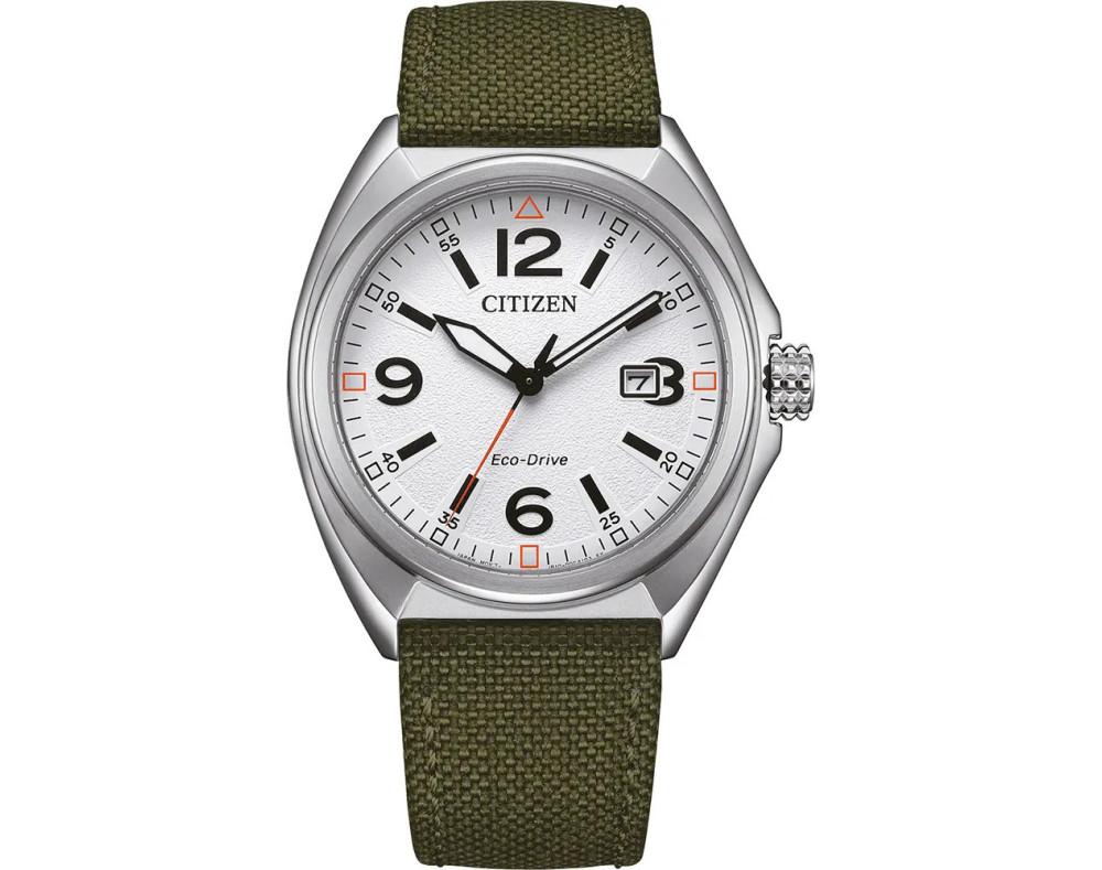 Orologio da polso Citizen Eco-Drive AW1571-09A Analogico Uomo con movimento Al quarzo, cassa in Acciaio inossidabile di diametro 40 mm, quadrante Argento, vetro Minerale e cinturino in Tessuto di colore Verde.
