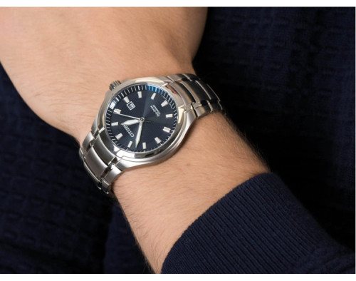 Orologio da polso Citizen Eco-Drive Super-Titanium BM7430-89L Analogico Uomo con movimento Al quarzo, cassa in Titanio di diametro 43 mm, quadrante Blu, vetro Minerale con trattamento Zaffiro e cinturino in Titanio di colore Argento.