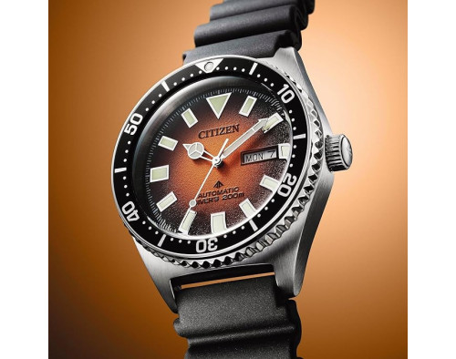 Orologio da polso Citizen Promaster Marine NY0120-01ZE Analogico Uomo con movimento Meccanico, cassa in Acciaio inossidabile di diametro 41 mm, quadrante Arancione, vetro Minerale e cinturino in Gomma di colore Nero.