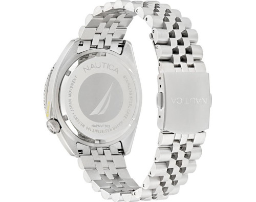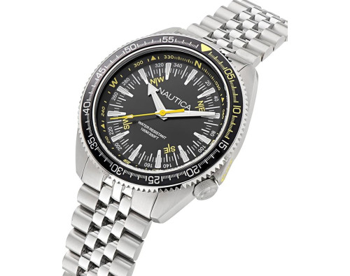 Orologio da polso Nautica NAPNVF303 Analogico Uomo con movimento Al quarzo, cassa in Acciaio inossidabile di diametro 44 mm, quadrante Nero, vetro Minerale e cinturino in Acciaio inossidabile di colore Argento.