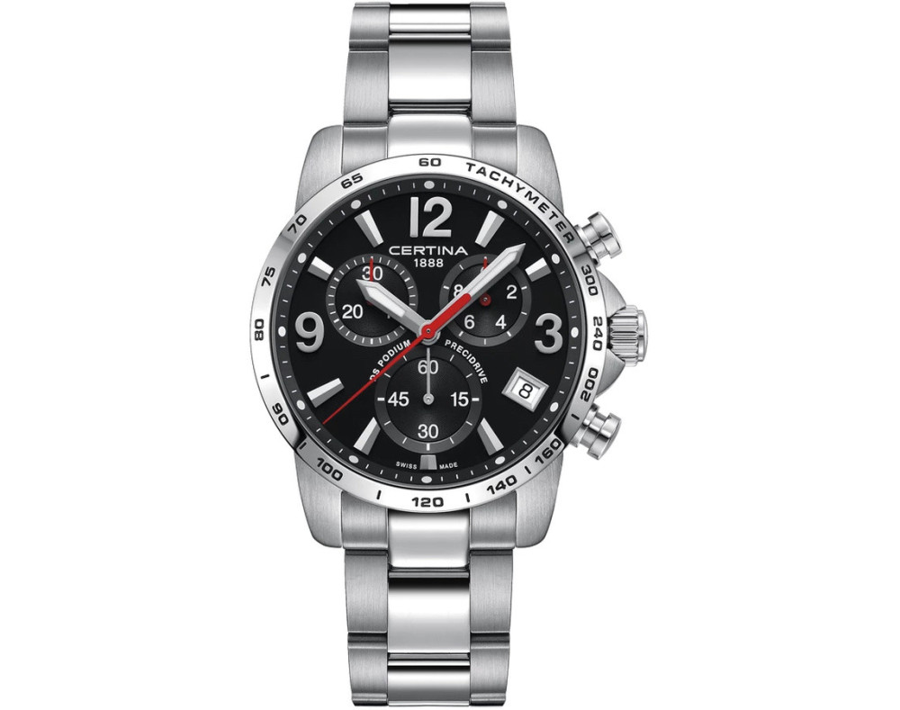 Orologio da polso Certina DS Podium C034.417.11.057.00 Cronografo Uomo con movimento Al quarzo, cassa in Acciaio inossidabile di diametro 41 mm, quadrante Nero, vetro Minerale con trattamento Zaffiro e cinturino in Acciaio inossidabile di colore Argento.