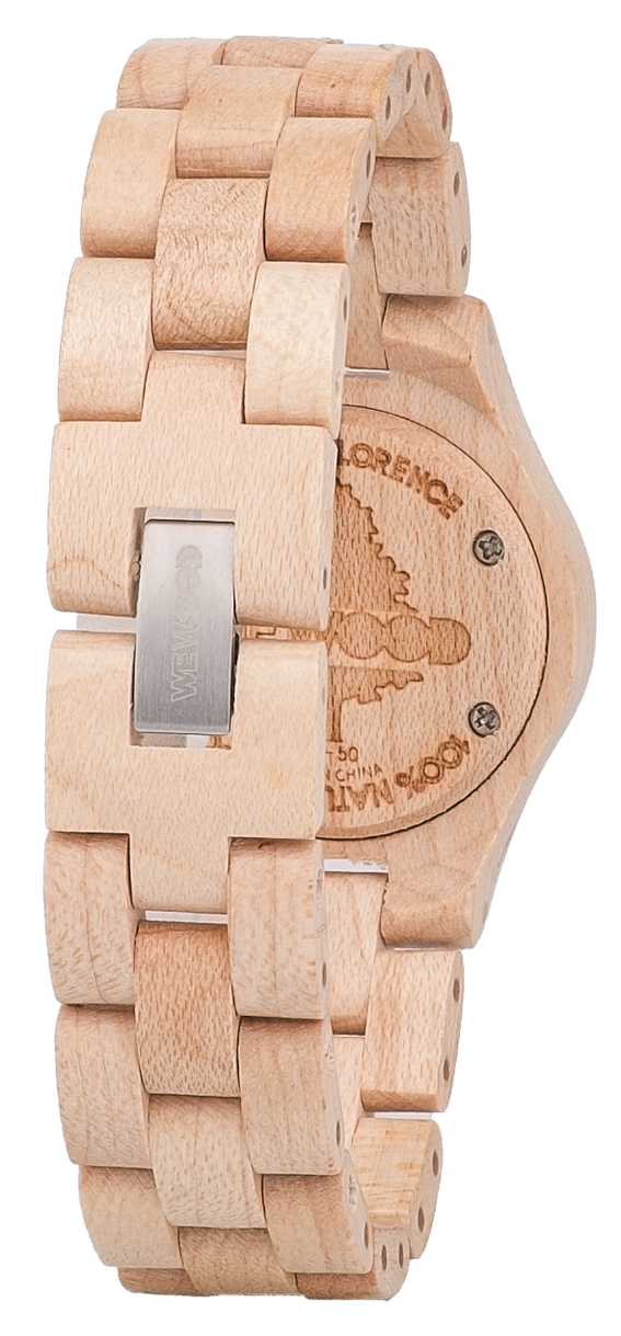 Kvarcas Moteris Rankinis laikrodis WeWOOD Moon Crystal Beige su Mediena dėklu, 30 mm skersmens, Mineralinis stiklas, Smėlio spalvos ciferblatu ir Smėlio spalvos Mediena apyranke.