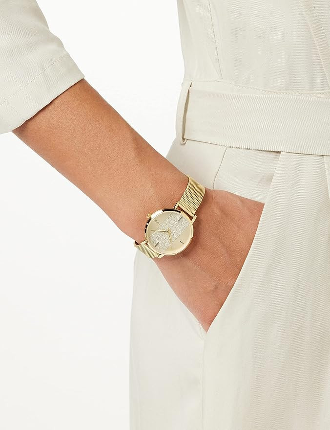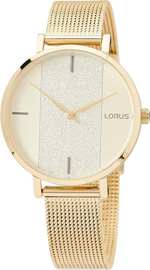 Kvarcas Moteris Rankinis laikrodis Lorus RG212SX9 su Nerūdijantis plienas dėklu, 34 mm skersmens, Mineralinis stiklas, Auksas ciferblatu ir Auksas Milano marškinėliai apyranke.