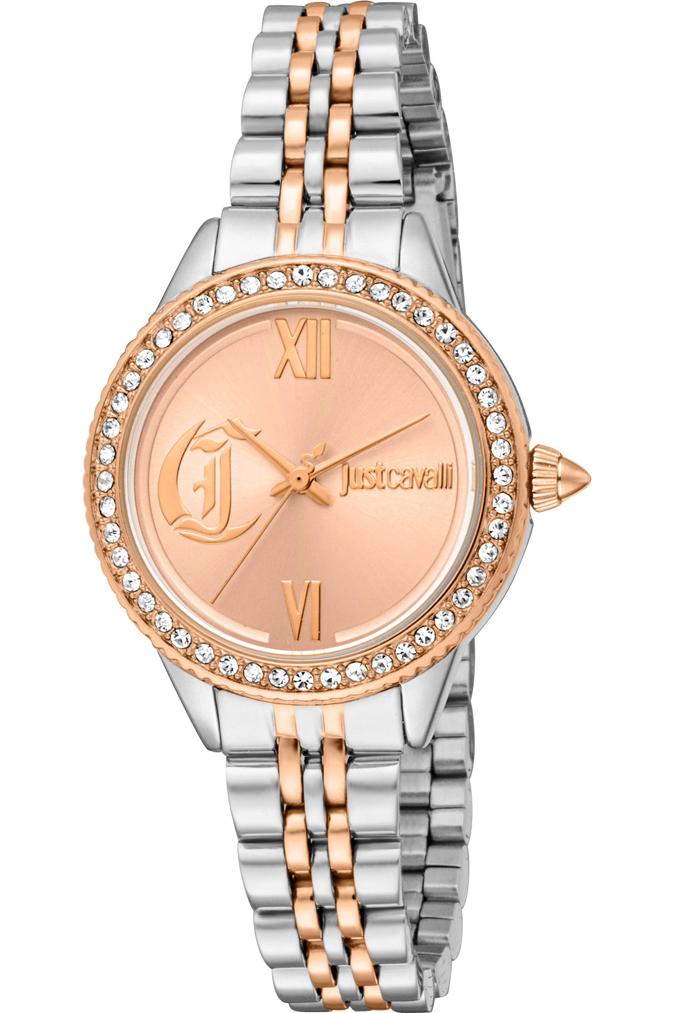 Kvarcas Moteris Rankinis laikrodis Just Cavalli JC1L316M0105 su Nerūdijantis plienas dėklu, 30 mm skersmens, Mineralinis stiklas, Rožinis auksas ciferblatu ir Dviejų atspalvių Nerūdijantis plienas apyranke.