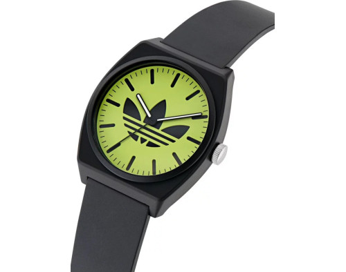 Kvarcas Unisex Rankinis laikrodis Adidas AOST25549 su Derva dėklu, 38 mm skersmens, Akrilas stiklas, Geltona ciferblatu ir Juoda Silikonas apyranke.