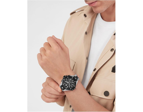 Kvarcas Vyras Rankinis laikrodis Philipp Plein PWPRA0224 su Nerūdijantis plienas dėklu, 46 mm skersmens, Mineralinis stiklas, Juoda ciferblatu ir Dviejų atspalvių Nerūdijantis plienas apyranke.