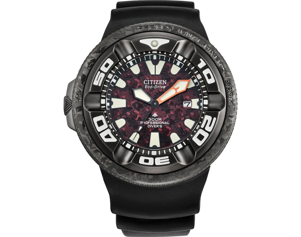 Kvarcas Vyras Rankinis laikrodis Citizen BJ8059-03Z su Nerūdijantis plienas dėklu, 48 mm skersmens, Mineralinis stiklas, Raudona ciferblatu ir Juoda Trintukas apyranke.