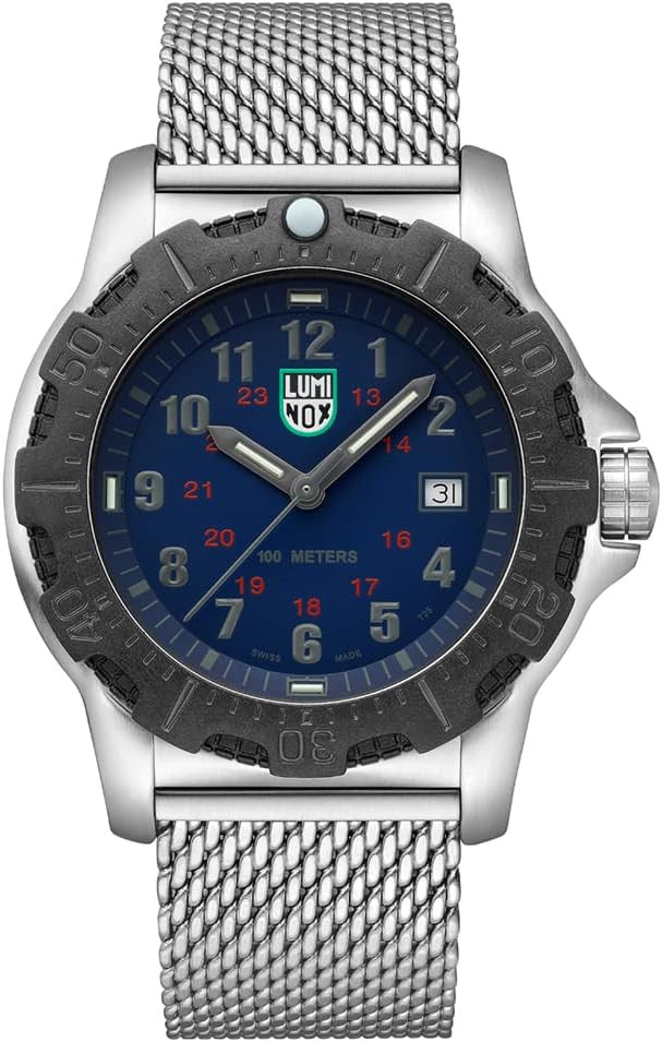 Kvarcs Cilvēks Rokas pulkstenis Luminox X2.2134 ar Nerūsējošais tērauds korpusu, ar diametru 45 mm, Minerāls ar safīru apstrādi stikls, Zils ciparnīcu un Sudrabs Milānas krekls siksnu.