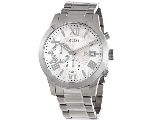 Īss ieskats Guess W0668G7 Kvarcs... 138,19 € Add to cart Kvarcs Cilvēks Rokas pulkstenis Guess W0668G7 ar Nerūsējošais tērauds korpusu, ar diametru 45 mm, Minerāls stikls, Sudrabs ciparnīcu un Sudrabs...