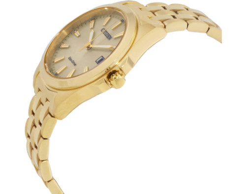 Kvarcs Sieviete Rokas pulkstenis Citizen EO1222-50P ar Nerūsējošais tērauds korpusu, ar diametru 34 mm, Minerāls ar safīru apstrādi stikls, Zelts ciparnīcu un Zelts Nerūsējošais tērauds siksnu.