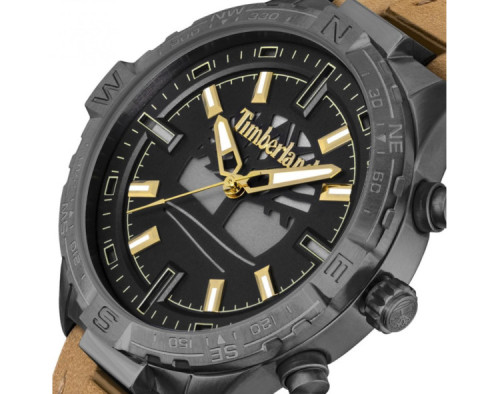 Кварц Мужчина Наручные часы Timberland TDWGD0031101, корпус Нержавеющая сталь, диаметр 44 mm, Минеральная стекло, Черный циферблат и Коричневый Кожа ремешок.