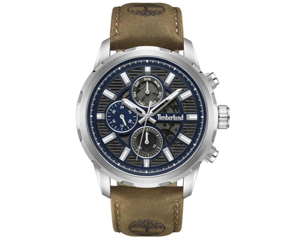 Кварц Мужчина Наручные часы Timberland TDWGF0056104, корпус Нержавеющая сталь, диаметр 46 mm, Минеральная стекло, Черный циферблат и Коричневый Кожа ремешок.