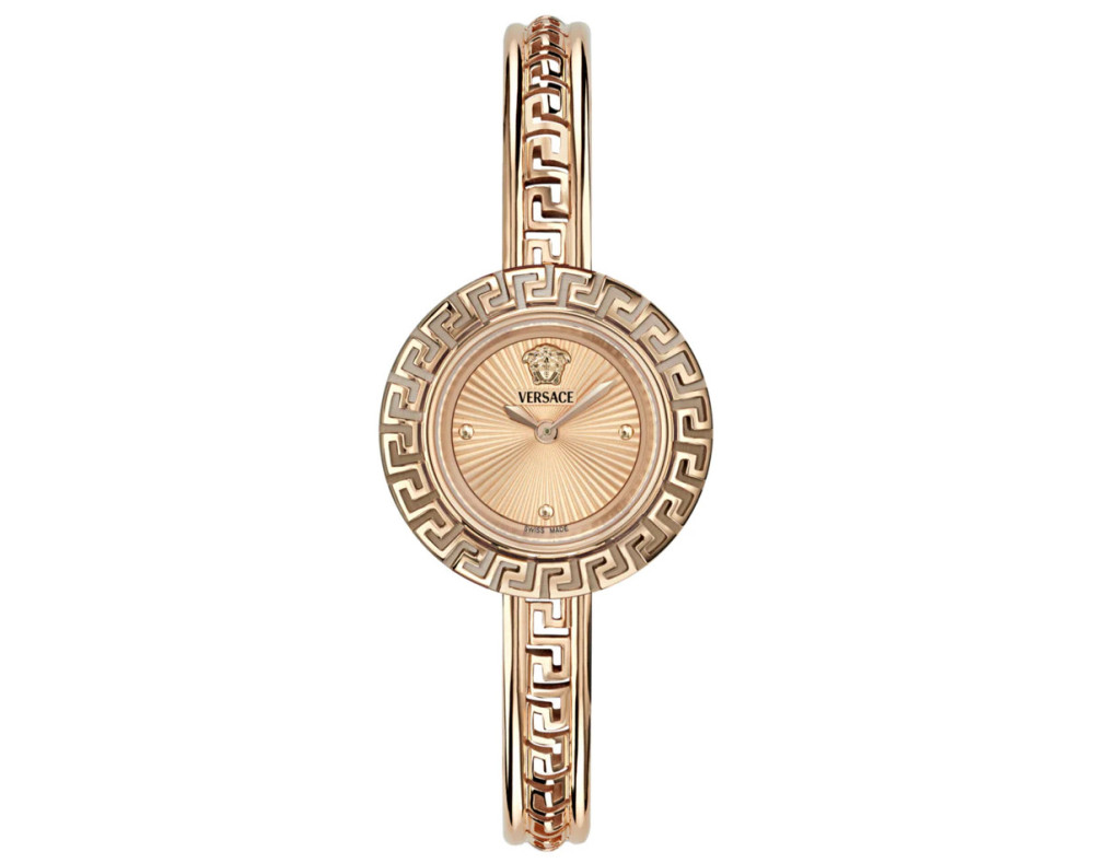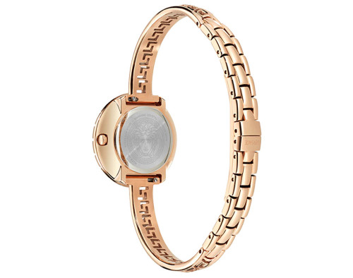 Кварц Женщина Наручные часы Versace VE8C00424, корпус Нержавеющая сталь, диаметр 28 mm, Минерал с обработкой сапфиром стекло, Розовое золото циферблат и Розовое золото Нержавеющая сталь ремешок.