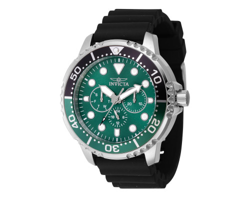 Кварц Мужчина Наручные часы Invicta 47232, корпус Нержавеющая сталь, диаметр 48 mm, Минеральная стекло, Зеленый циферблат и Черный Силикон ремешок.