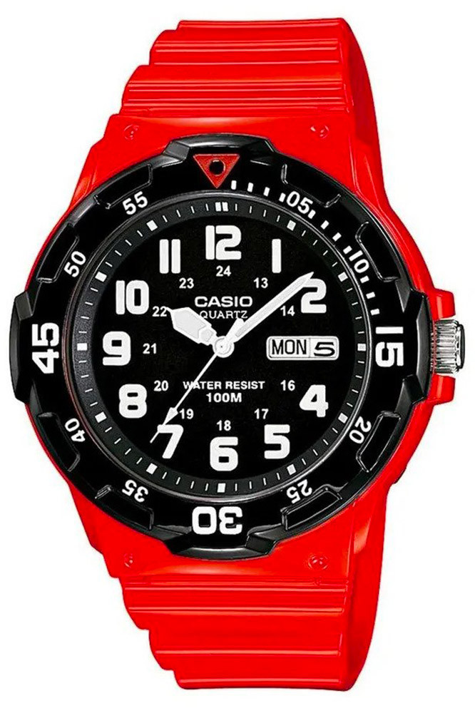 Reloj de pulsera Casio MRW-200HC-4BVDF para Hombre con movimento de Cuarzo, con caja de Resina con diàmetro de 45 mm, con cuadrante Negro y correa en Resina, color Rojo.