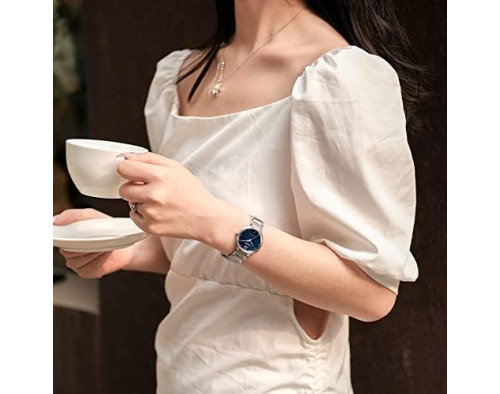 Reloj de pulsera Citizen Eco-Drive Elegance EM0920-86L para Mujer con movimento de Cuarzo, con caja de Acero inoxidable con diàmetro de 28 mm, con cuadrante Azul y correa en Acero inoxidable, color Plateado.