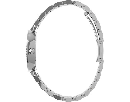 Armbanduhr Timex City TW2V45000 für Damen mit Quarzwerk, Uhrengehäuse aus Edelstahl mit einem Durchmesser von 32 mm, Ziffernblatt Silber und Uhrenarmband aus Edelstahl in der Farbe Silber.