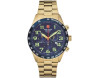 Armbanduhr Swiss Alpine Military Combat Light 7047.9115 für Herren mit Quarzwerk, Uhrengehäuse aus Edelstahl mit einem Durchmesser von 45 mm, Ziffernblatt Blau und Uhrenarmband aus Edelstahl in der Farbe Gold.