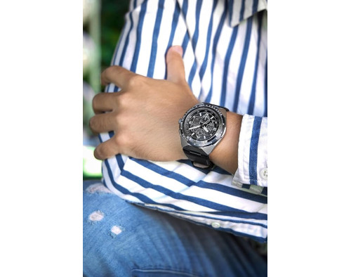 Armbanduhr Citizen Promaster Skyhawk A-T JY8149-05E für Herren mit Quarzwerk, Uhrengehäuse aus Edelstahl mit einem Durchmesser von 46 mm, Ziffernblatt Schwarz und Uhrenarmband aus Leder in der Farbe Schwarz.