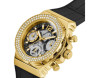 Armbanduhr Guess Fusion GW0553L4 für Damen mit Quarzwerk, Uhrengehäuse aus Edelstahl mit einem Durchmesser von 36 mm, Ziffernblatt Schwarz und Uhrenarmband aus Silikon in der Farbe Schwarz.