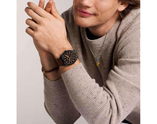 Reloj de pulsera Fossil Everett FS6108 para Hombre con movimento de Cuarzo, con caja de Acero inoxidable con diàmetro de 44 mm, con cuadrante Marrón y correa en Piel, color Marrón.