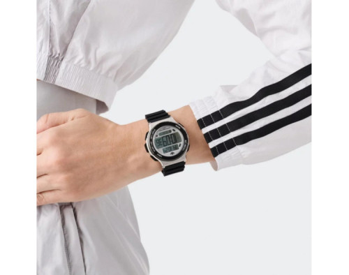 Reloj de pulsera Adidas Expression Three AOFH25507 para Unisex con movimento de Cuarzo, con caja de Acero inoxidable con diàmetro de 44 mm, con cuadrante LCD y correa en Silicona, color Negro.