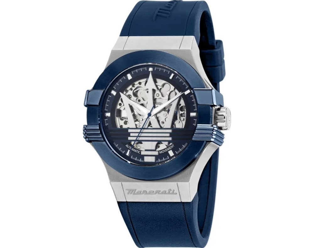 Reloj de pulsera Maserati Potenza R8821108050 para Hombre con movimento de Mecánico, con caja de Acero inoxidable con diàmetro de 42 mm, con cuadrante Azul y correa en Silicona, color Azul.