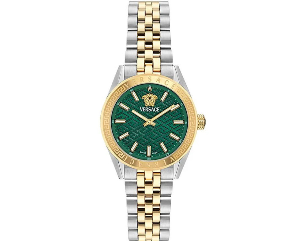 Kvarts Naine Käekell Versace VE8I00424, Roostevaba teras korpusega, läbimõõduga 36 mm, Safiiri töötlusega mineraal klaasist, Roheline sihverplaadi ja Kahetooniline Roostevaba teras rihm.
