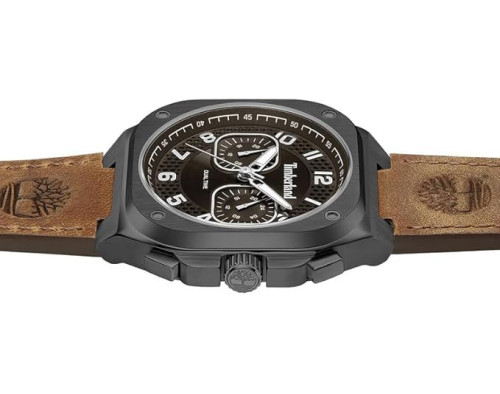 Kvarts Mees Käekell Timberland TDWGF0055001, Roostevaba teras korpusega, läbimõõduga 46 mm, Mineraal klaasist, Pruun sihverplaadi ja Pruun Nahk rihm.